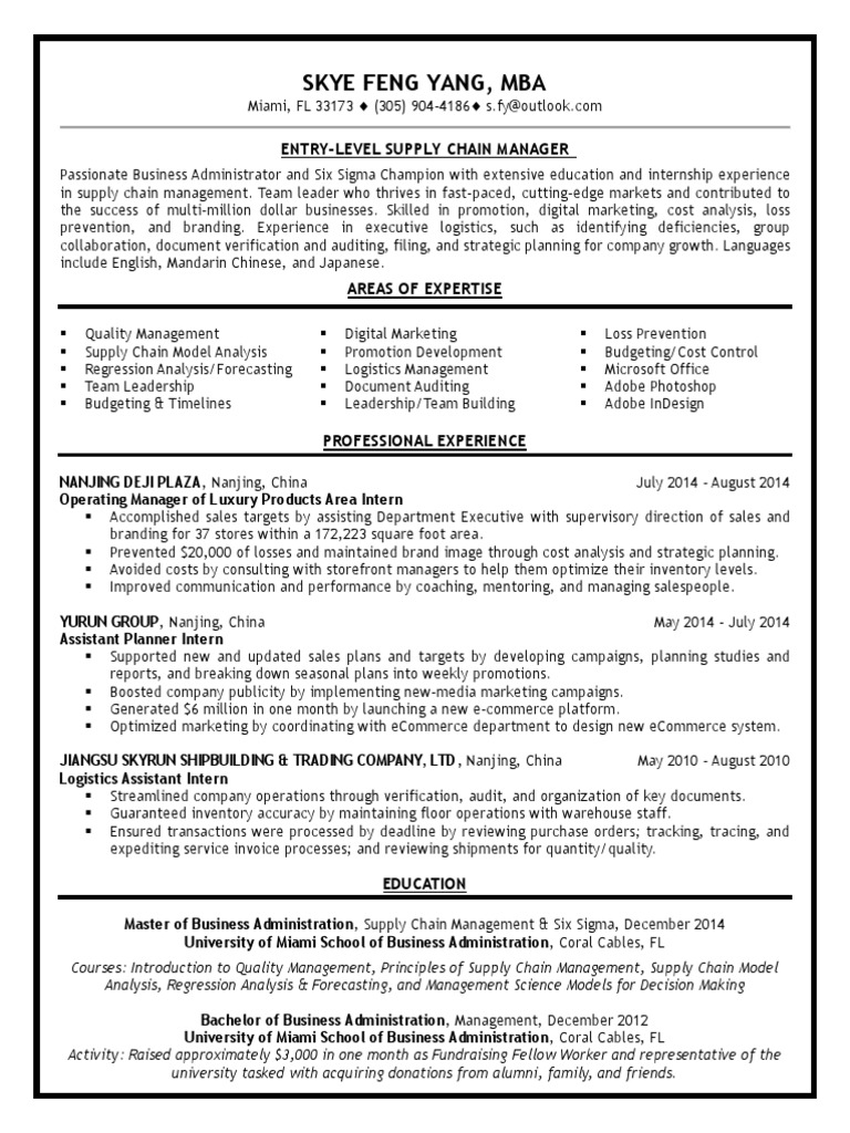 Production helper an applicant with limited work experience can use a functional resume format to highlight her production skills. The ideal resume objective packs in: Paths to becoming a supply chain manager, reveal that there are many ways to gain the knowledge required for a supply chain manager position. The results, as seen in the infographic: Consider adding relevant extracurricular activities or membership in student societies. Resume objectives are more appropriate for candidates fresh out of college or just entering the field of supply chain industry. Apply to entry level data analyst, entry level web developer, science graduate and more! Basic info on who you are as a pro and what are you goals. It turns out that successful supply chain professionals come from varied backgrounds with diverse levels of education and experience. 2013 ucla bachelor of science (bs), statistics. 1,108 entry level sql jobs available on indeed.com. Manufacturing technician, data scientist, supply chain technical analyst; List the relevant courses you took and show off your gpa if it's higher than 3.5.